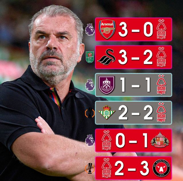 出任诺丁汉森林主帅仅仅24天,波斯特科格鲁带队踢了6场比赛,结果是2平4负未尝胜绩: