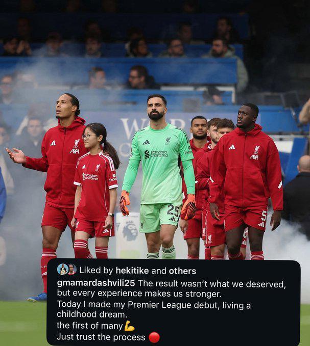 雷速体育10月5日宣 英超联赛第7轮的焦点战,利物浦在补时阶段遭到绝杀,最终1-2不敌切尔西。这是利物浦各项赛事遭遇的三连败。本场比赛首发的利物浦门将马马尔达什维利在赛后发社媒鼓励球队。值得一提的是,本场比赛是马马尔达什维利代表利物浦的英超首秀。