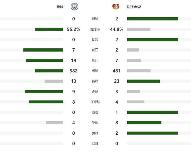 下半场瓜迪奥拉一口气换上了福登、奥赖利和多库,想要加强球队的进攻,不过第54分钟勒沃库森就给了主队沉重一击,身高1米91的大中锋希克,接到队友45°传中后,头球破门得分,帮助勒沃库森将领先的优势扩大到了2球。