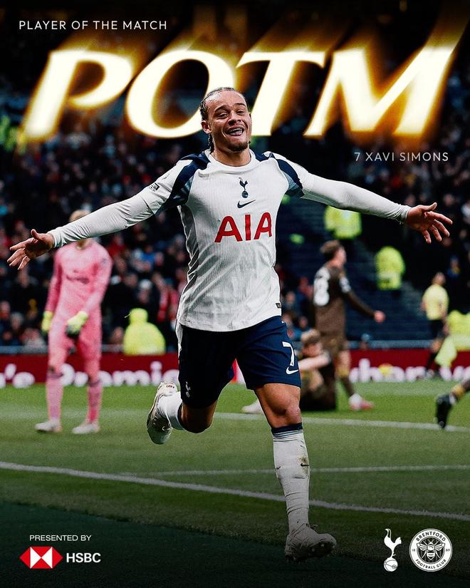 在热刺主场对阵布伦特福德的比赛中,哈维-西蒙斯首发出场并打满全场,贡献1射1传,全场挖出4次射门,2次射正,送出1脚关键传球,创造进球机会1次,另外,他还完成1次抢断,1次拦截与4次成功地面争抢,传球成功率为84%。