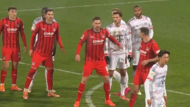 比赛节奏不出意料是尽在拜仁掌控范围,接二连三施压制造险情,于是仅用15分钟便撬开对面的球门,一次角球配合,斯塔尼希奇精准抢点顶进,非常顺利的占得先机。海登海姆作为联赛倒数第二的球队,综合实力差距悬殊,全面的压制是无可奈何,只能等待对方犯错,否则很难有威胁产生。