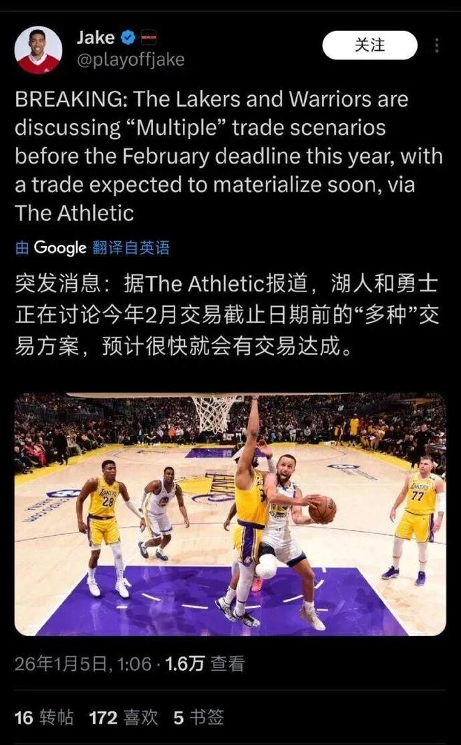权威美媒The Athletic今天爆料了湖人与勇士的交易动向。